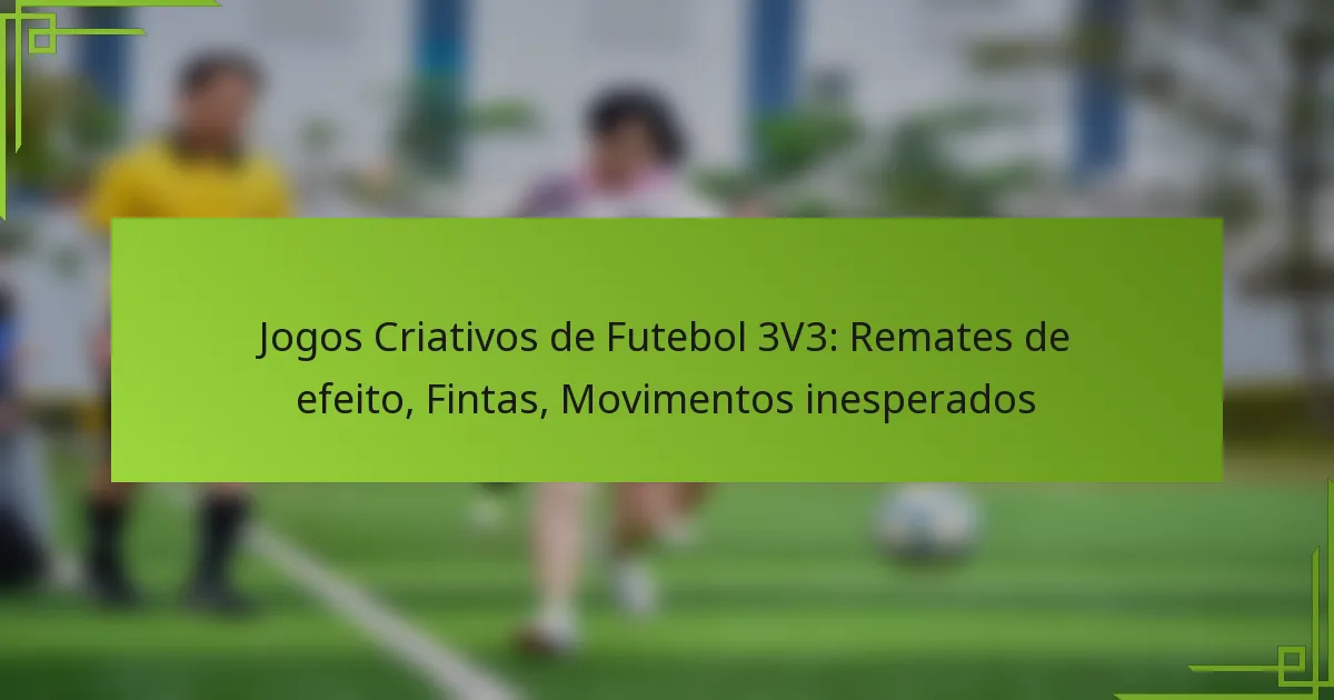 As jogadas criativas no futebol 3V3 incluem remates engenhosos, fintas e movimentos inesperados que podem surpreender os adversários e criar oportunidades de golo. Estas técnicas melhoram o jogo ao adicionar imprevisibilidade e estilo, tornando-o mais envolvente para jogadores e espectadores.