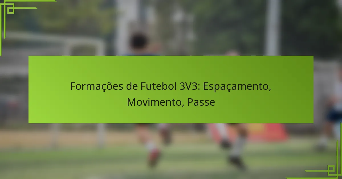 No futebol 3v3, as formações são essenciais para otimizar o espaçamento dos jogadores, o movimento e a eficiência dos passes. Ao focar nesses elementos, as equipas podem melhorar o seu trabalho em equipa, criar oportunidades de golo e manter uma estrutura defensiva sólida. Um espaçamento eficaz permite que os jogadores evitem a aglomeração e estabeleçam caminhos de passe claros, enquanto padrões de movimento estratégicos promovem um jogo fluido e transições rápidas.